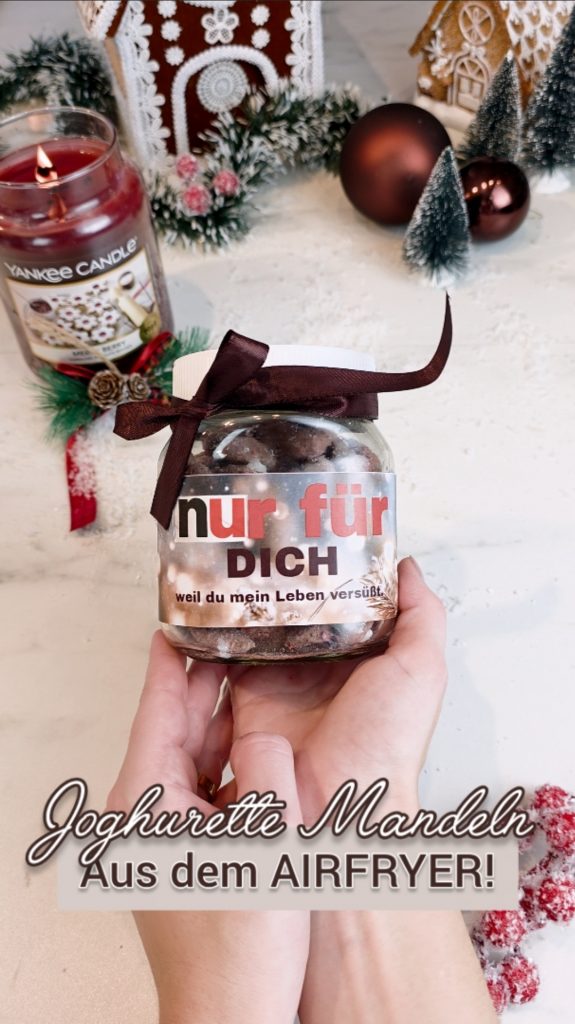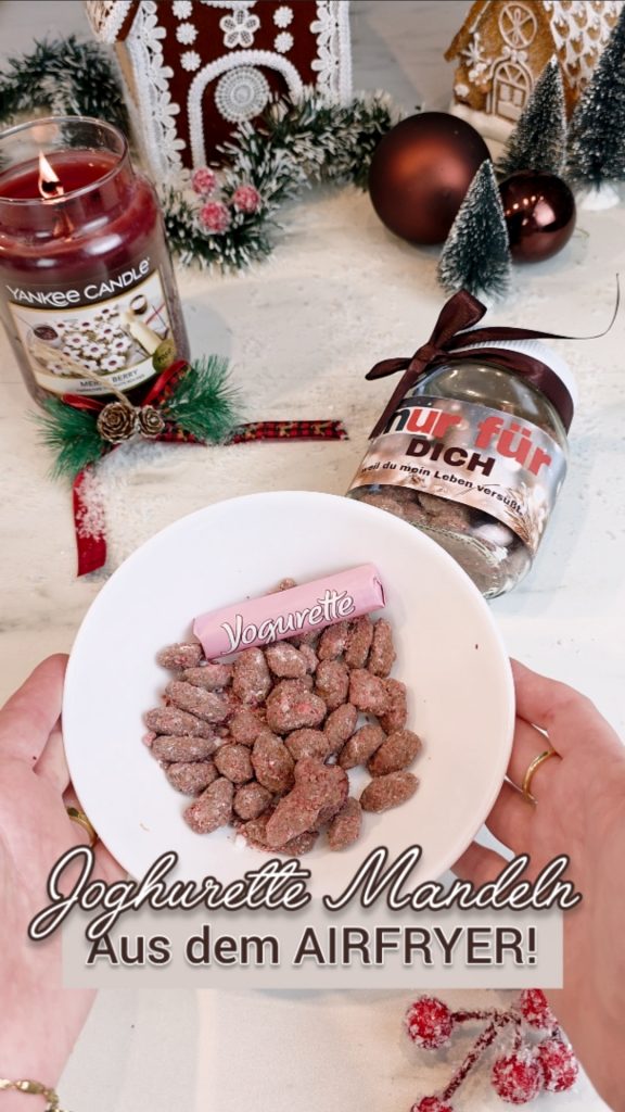 Suchst du nach einem schnellen DIY-Weihnachtsrezept, das süß, knusprig und besonders dekorativ ist? Dann sind diese Joghurette-Mandeln aus dem Airfryer perfekt! Sie eignen sich ideal als Weihnachtsgeschenk aus der Küche, Mitbringsel für Freunde oder Familie oder für die festliche Kaffeetafel.