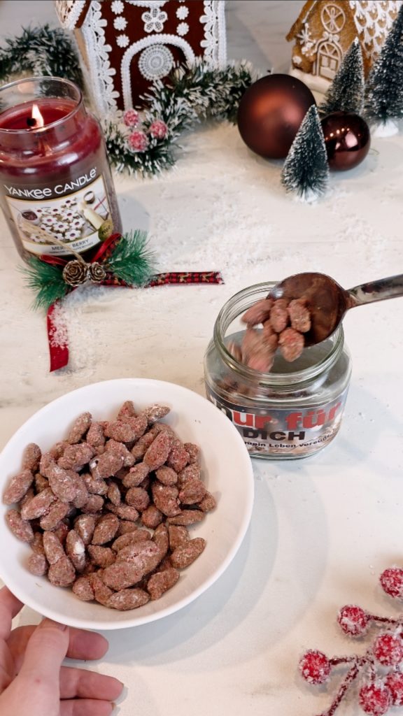 Natürlich kannst du auch die Joghurette, sowie den Erdbeerpuderzucker weglassen, wenn du die klassische gebrannte Mandeln Methode bevorzugst.