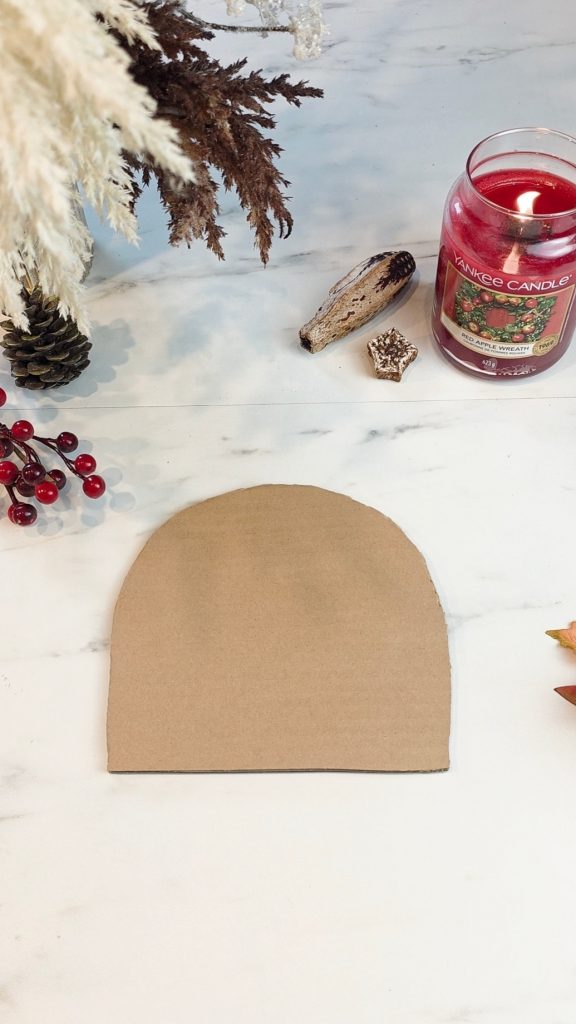 Als erstes schneidet man aus einem Stück Pappe einen halbrunden Kreis in der gewünschten Größe aus. Dieser Halbkreis dient als Grundlage für unseren Geist.