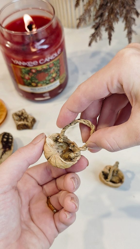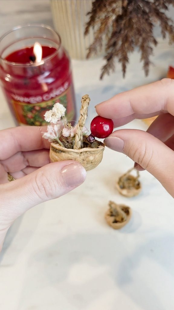 Das DIY-Körbchen aus einer Walnuss kannst du vielseitig einsetzen und immer wieder neu dekorieren. Besonders schön wirkt es: