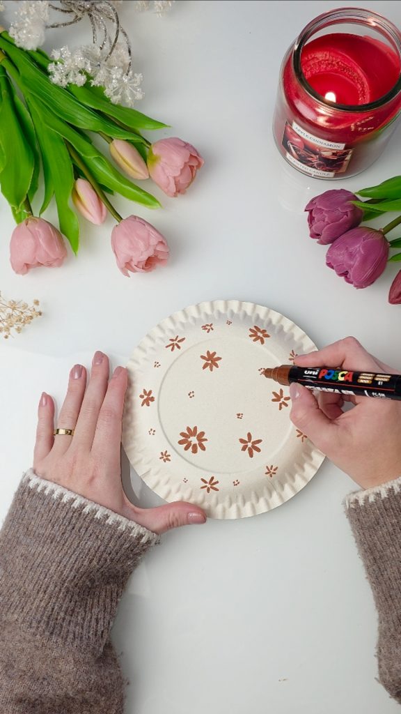 Bemale die Pappteller nach Wunsch. Hier kannst du kreativ werden und dein Lämmchen ganz individuell gestalten.