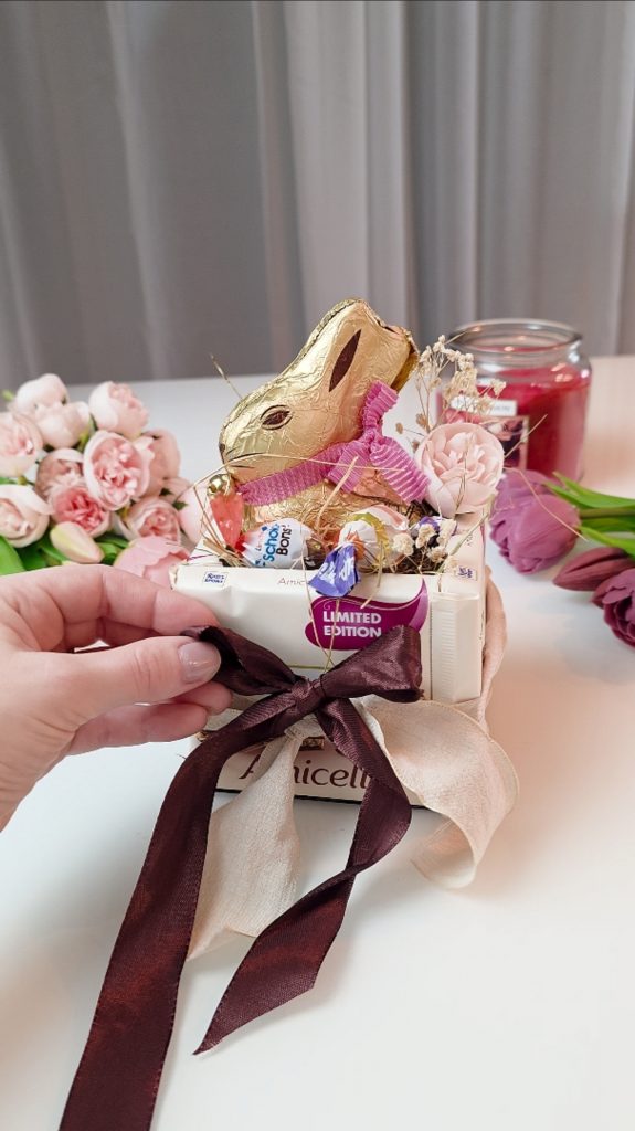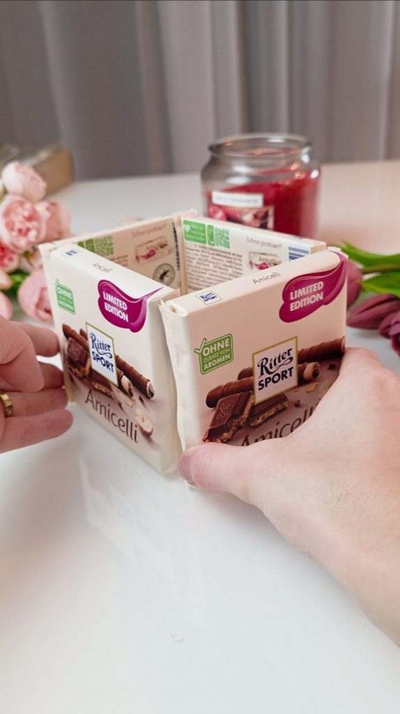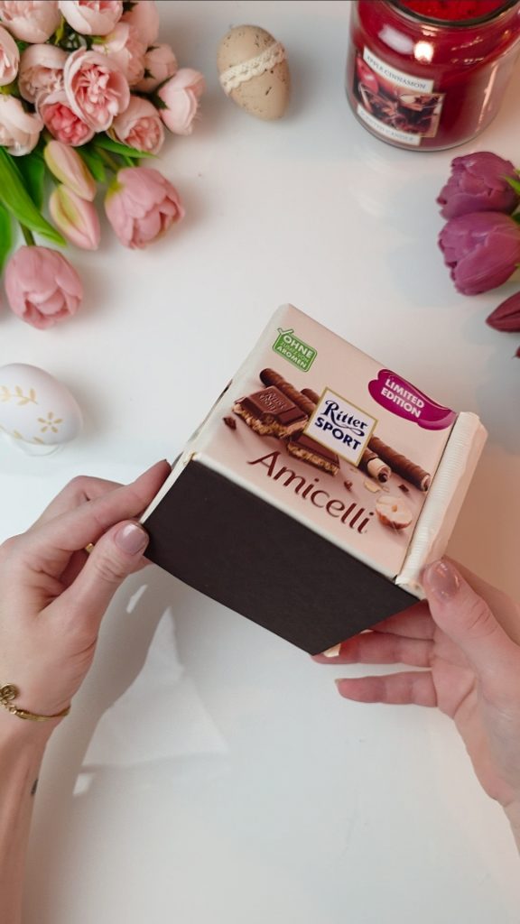 Diese Bastelidee kombiniert Geschenk und Verpackung in einem. Die Schokolade wird selbst Teil des Geschenks und macht das Osternest besonders hochwertig und originell. Gleichzeitig ist die Umsetzung einfach und auch für Bastelanfänger geeignet.