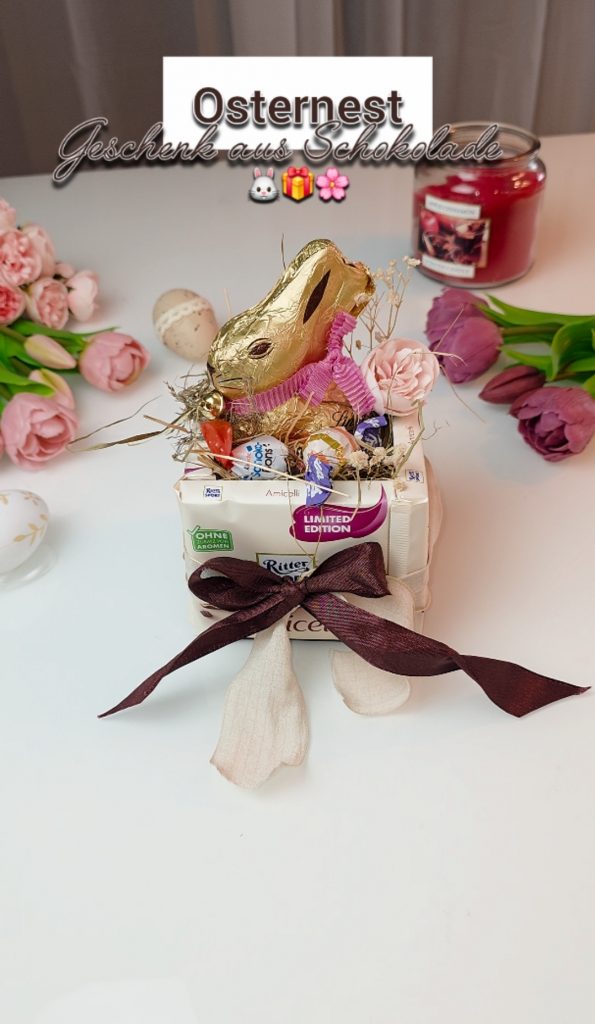 Selbstgemachte Geschenkideen sind besonders zu Ostern beliebt, denn sie sind persönlich, kreativ und zeigen echte Wertschätzung. Dieses Schokoladen-Osternest eignet sich perfekt als kleine Aufmerksamkeit für Familie, Freunde, Kollegen, Kinder, Erzieher oder Nachbarn und ist gleichzeitig eine tolle Alternative zum klassischen Osternest.