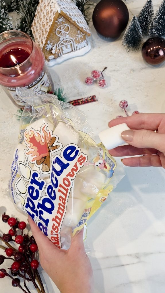 Während die Kugel kühlt, bereitest du die Marshmallows vor. Teile sie passend für Kopf, Ohren, Arme und Füße zurecht.