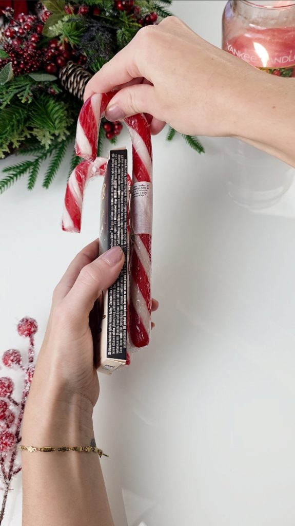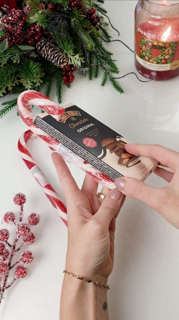 Klebe die Zuckerstangen unter deine Tafel Schokolade.